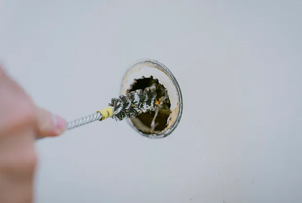取り付け部分や配管などの古いシールテープやサビを取り除きます。蛇口の汚れを歯ブラシなどを使ってきれいにします。